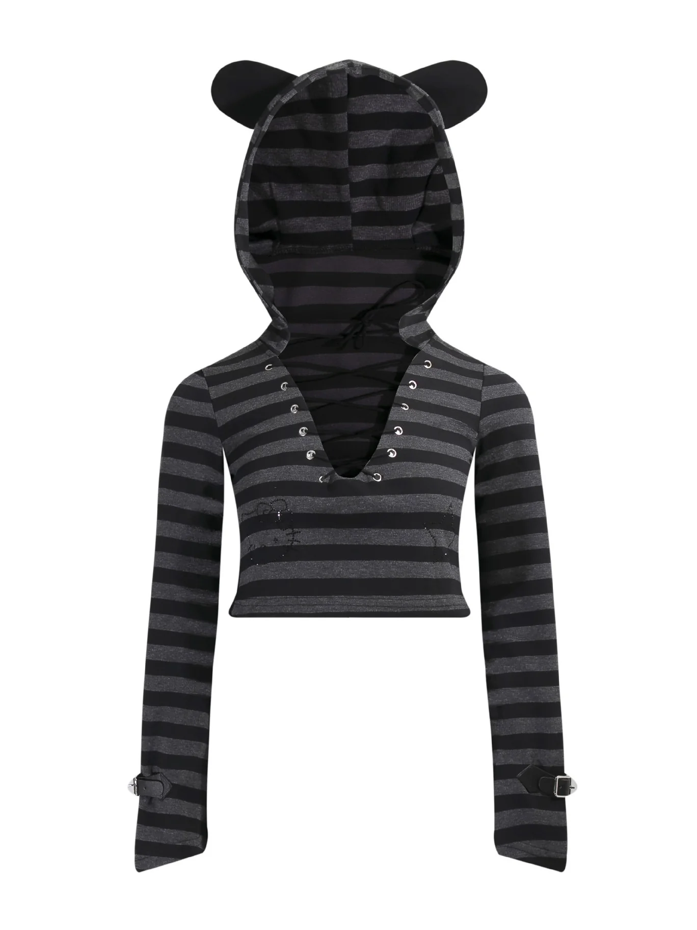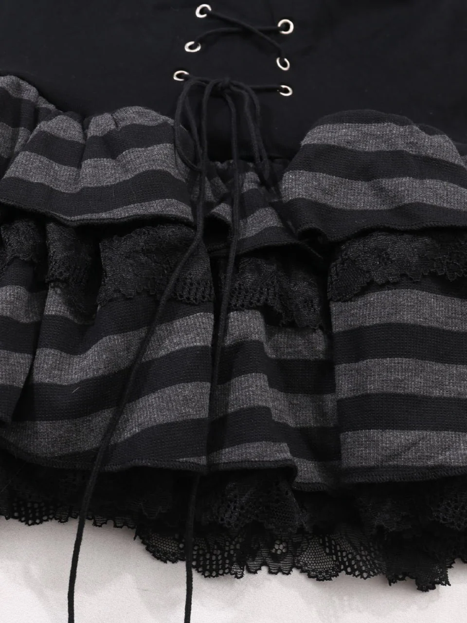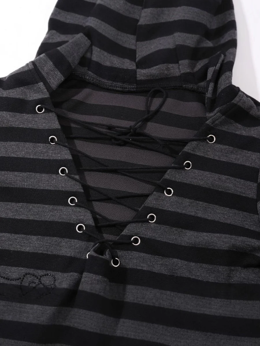 Be the first to review “‘Striped Cat’ Lace-Up Cat Ear Hoodie & High-Waist Lace Layered Skirt Set”