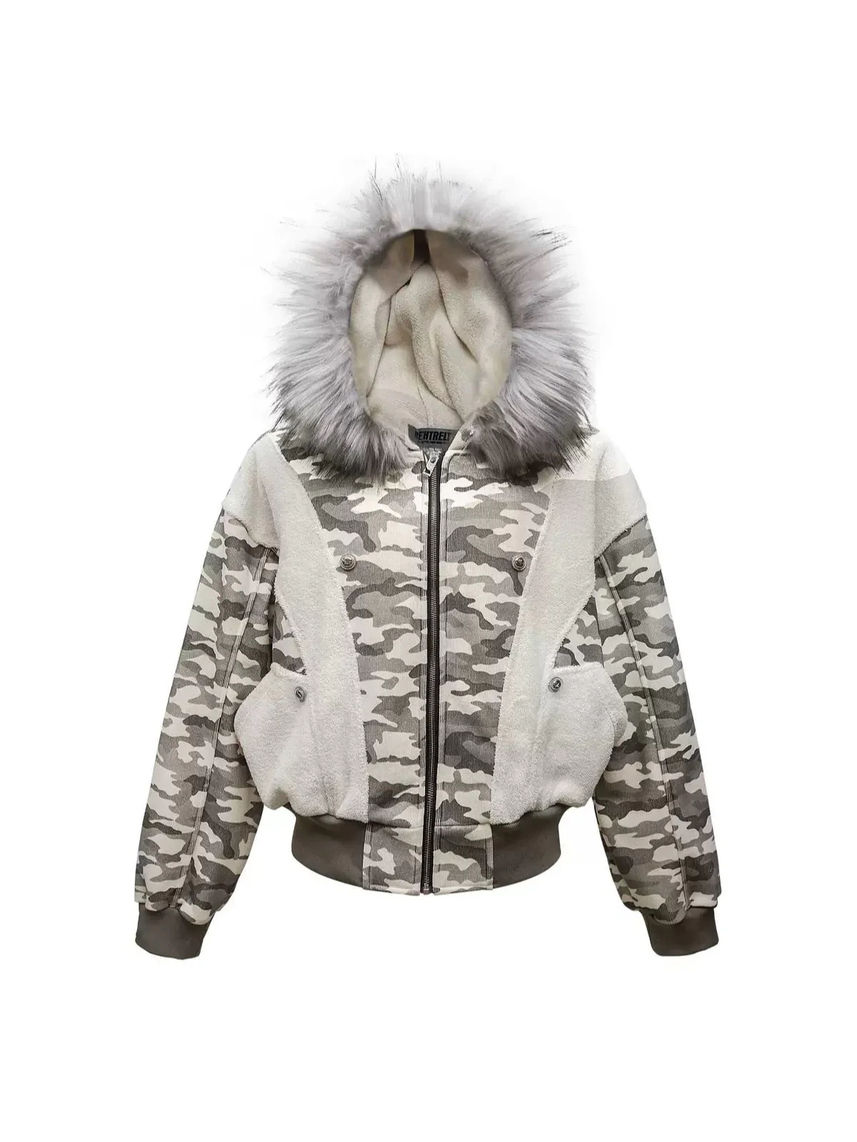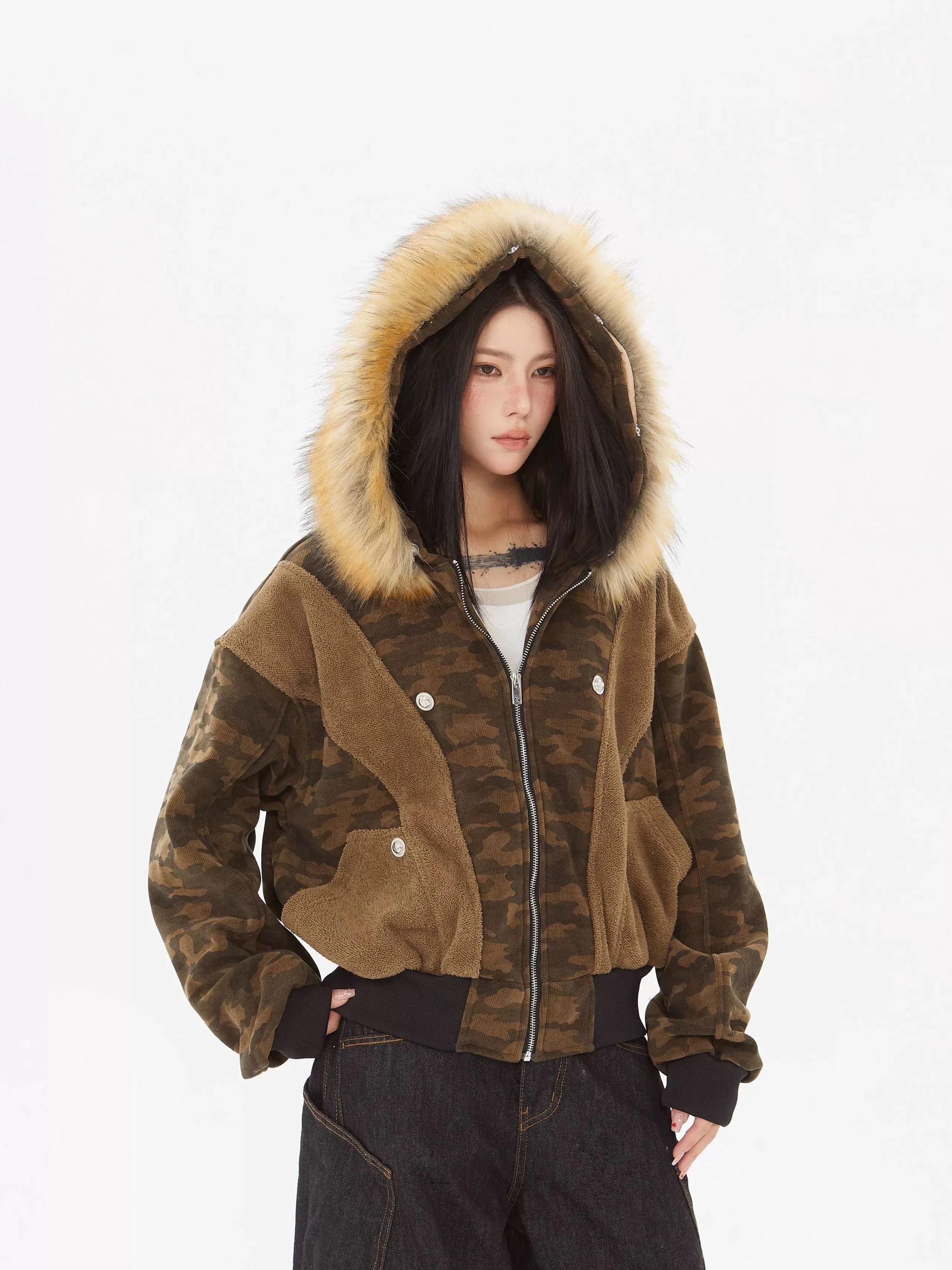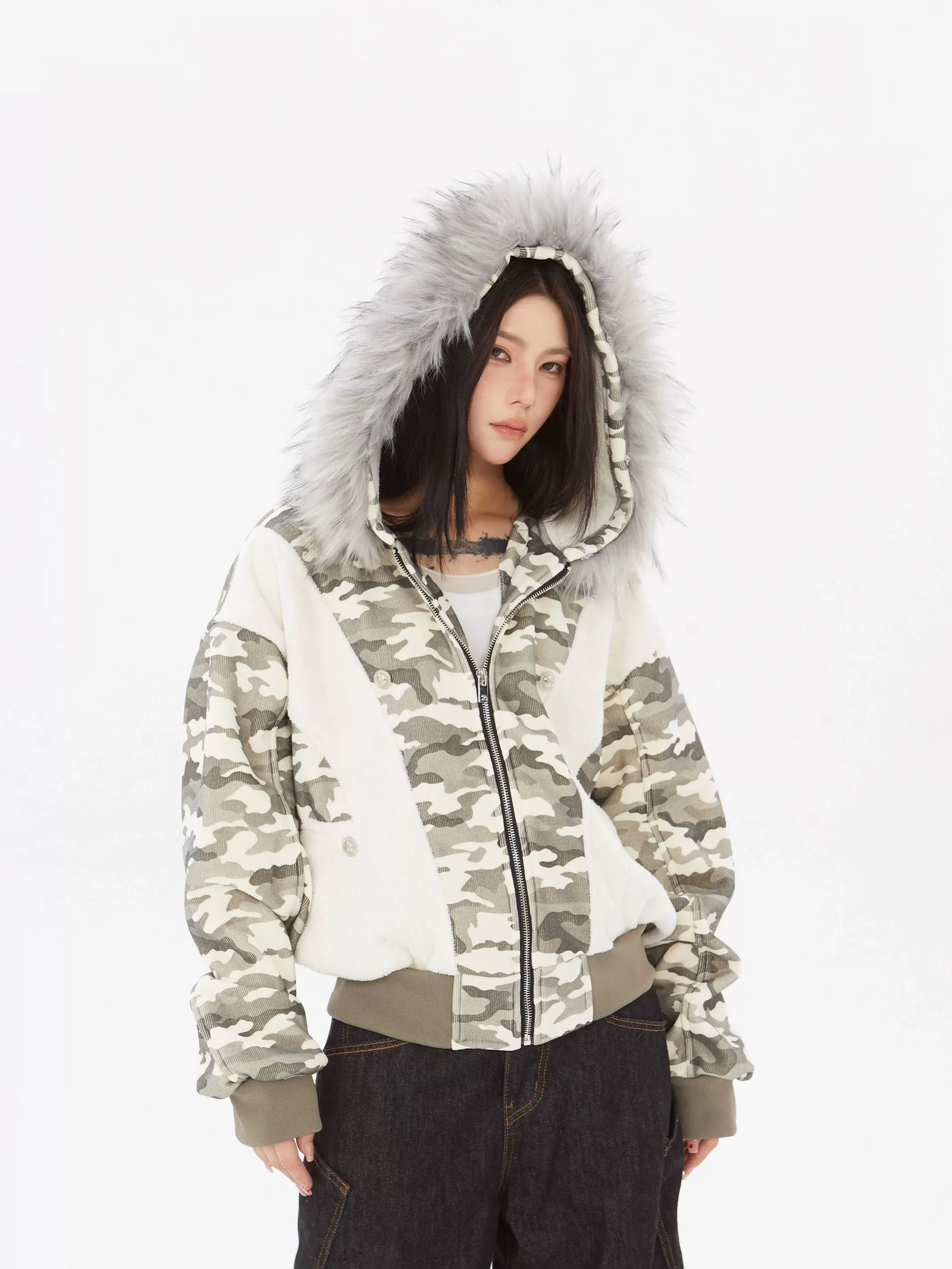 Be the first to review “‘Ice Berg’ Streetstyle Fluffy Hood Camouflage Outwear Puffer Jacket”