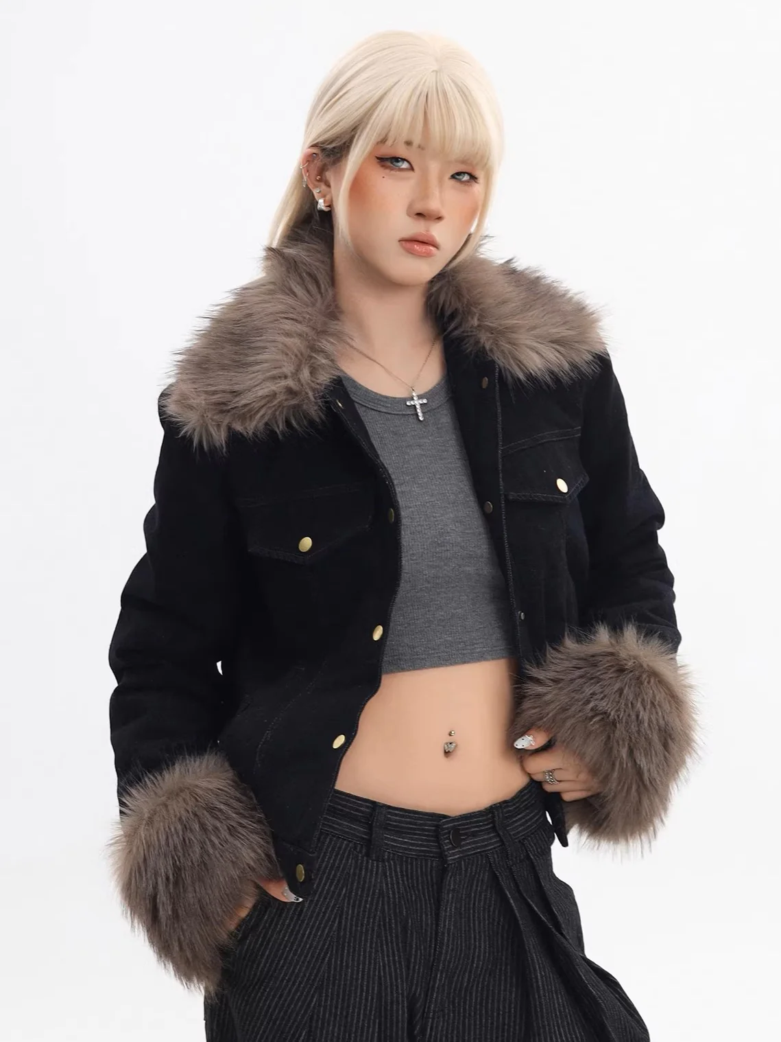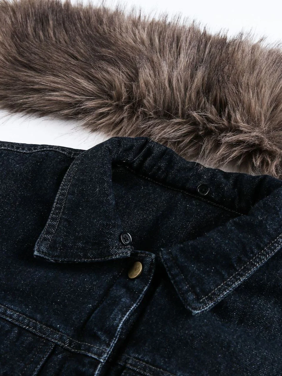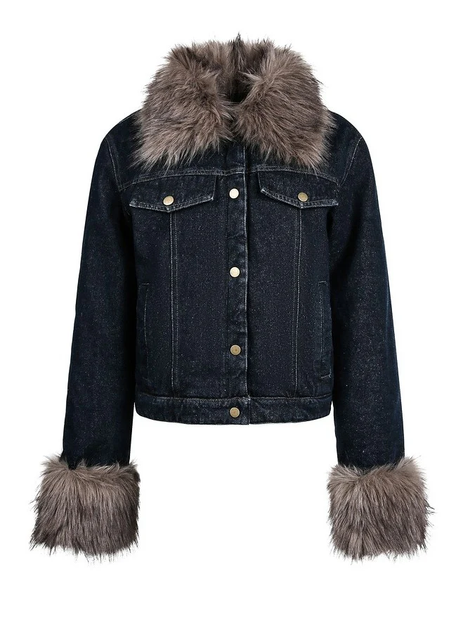 Be the first to review “‘Blue Haven’ Vintage Fur-Collar Cropped Denim Puffer Jacket”