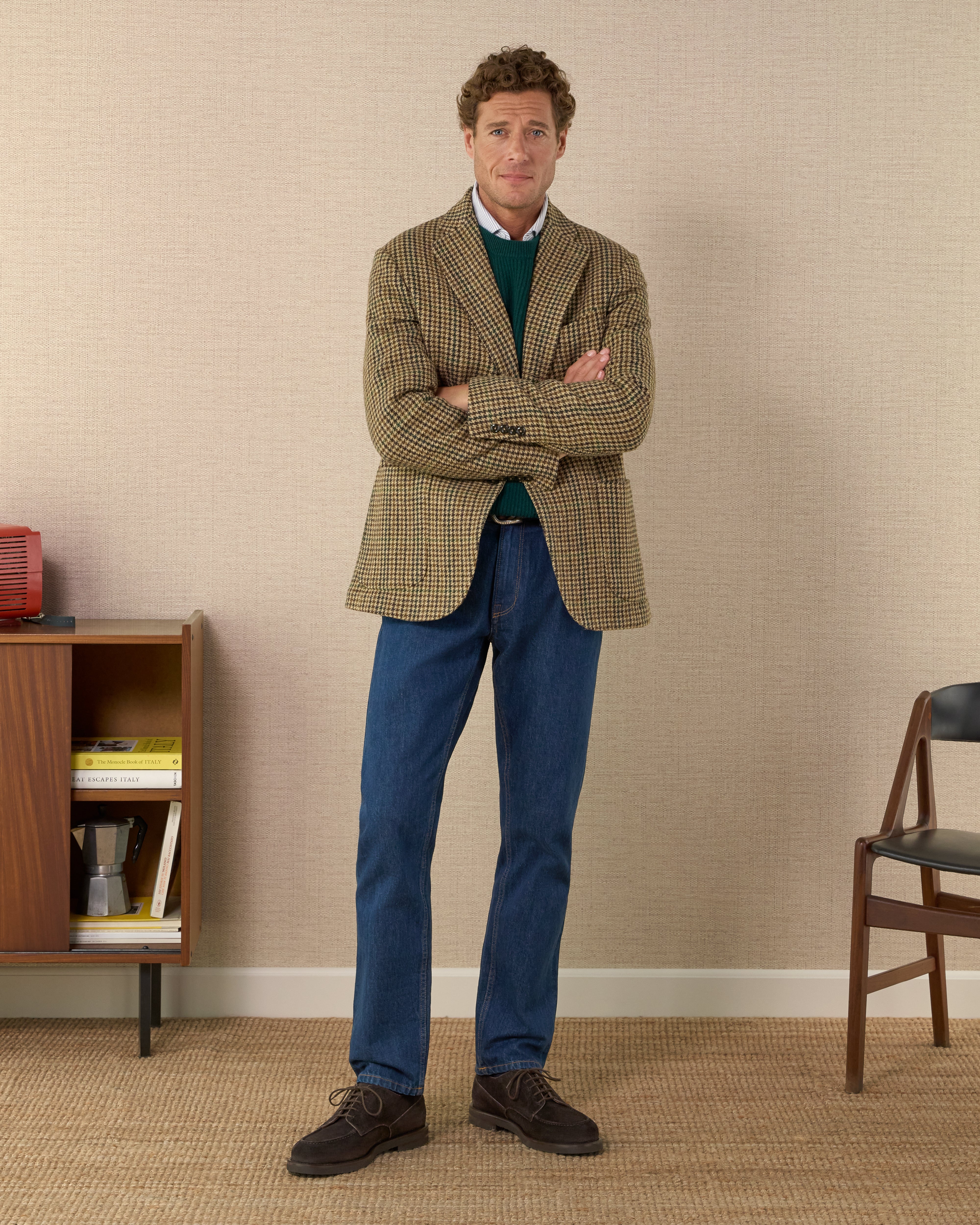 Brown, beige and green houndstooth |