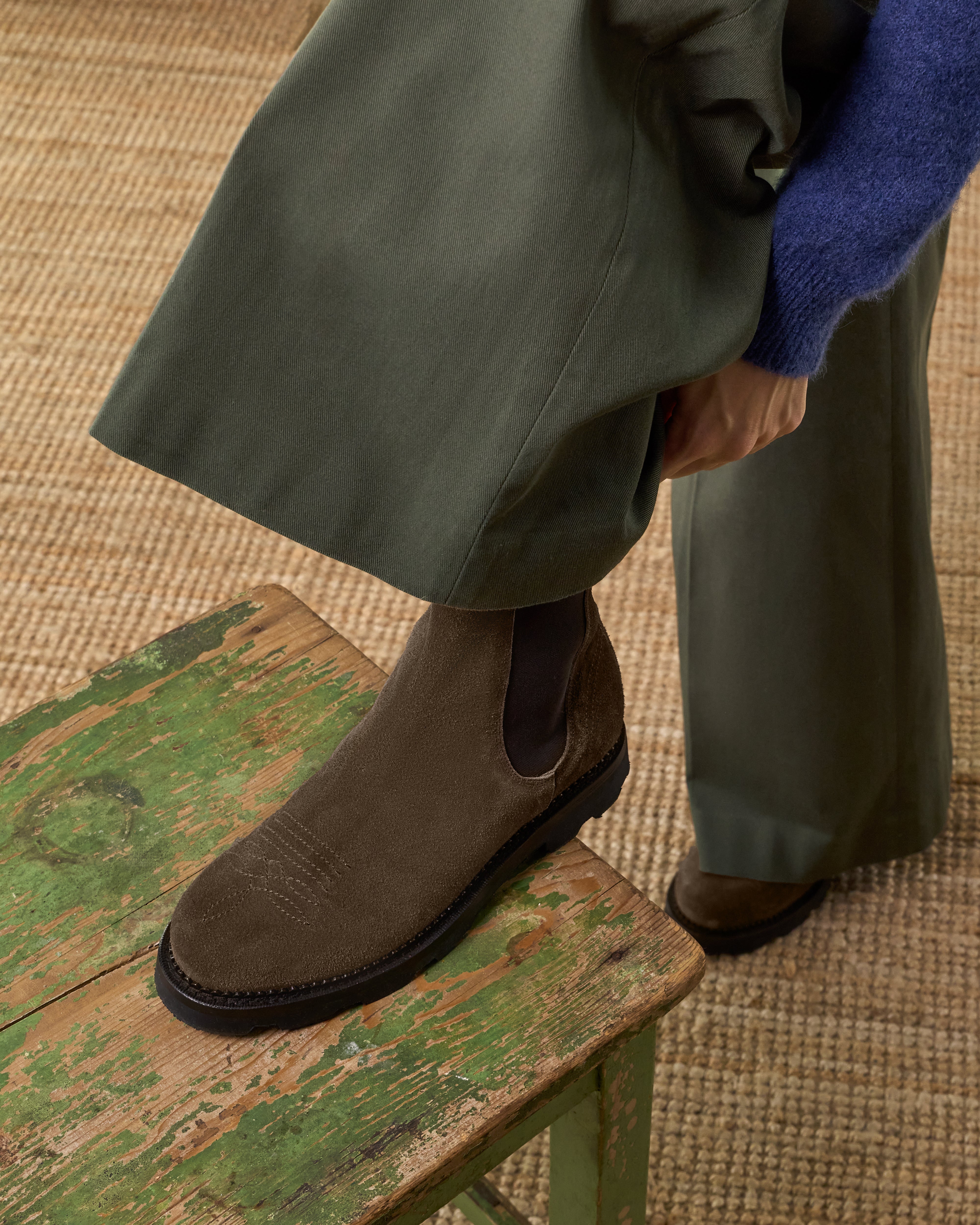 Greased suede calf leather |