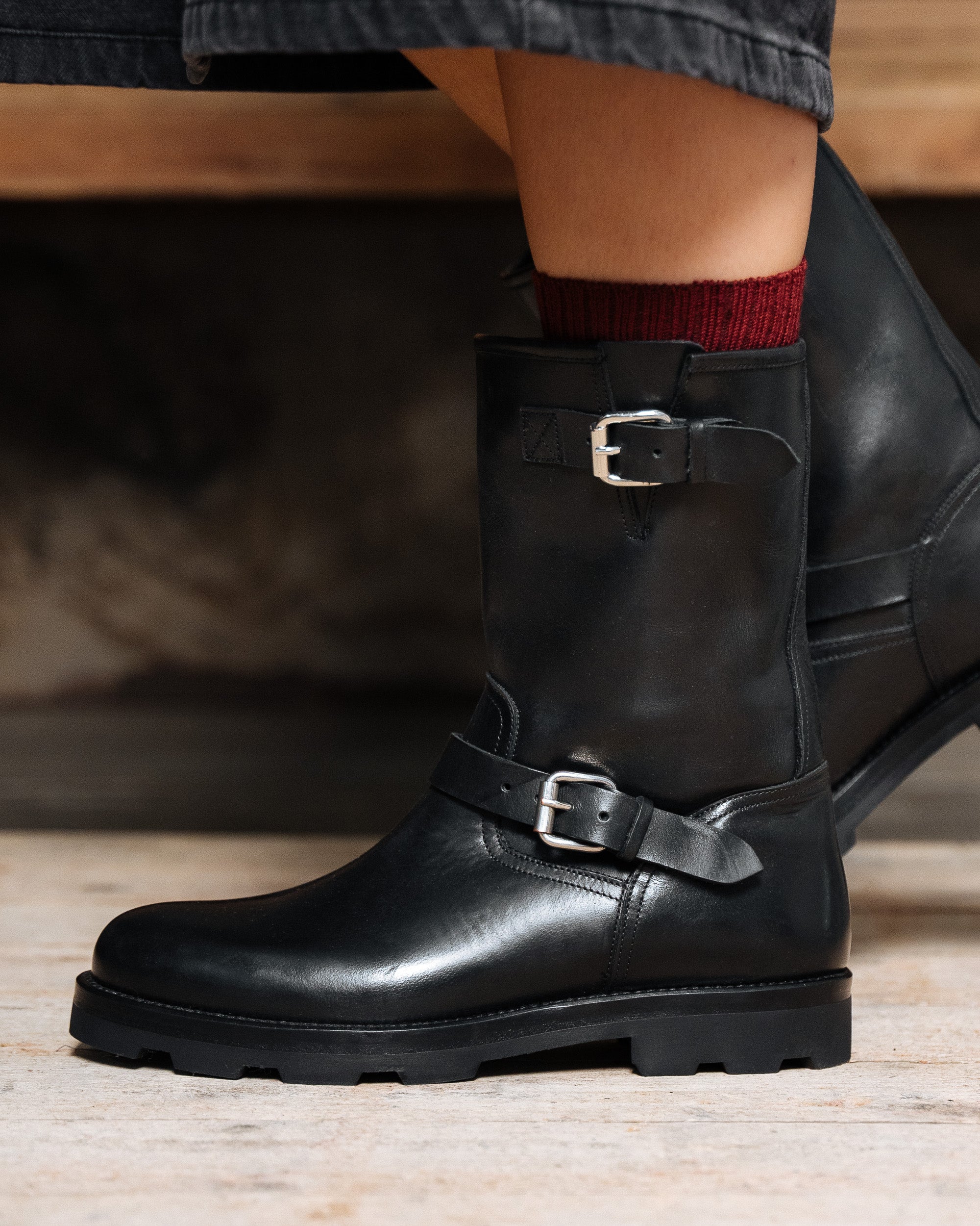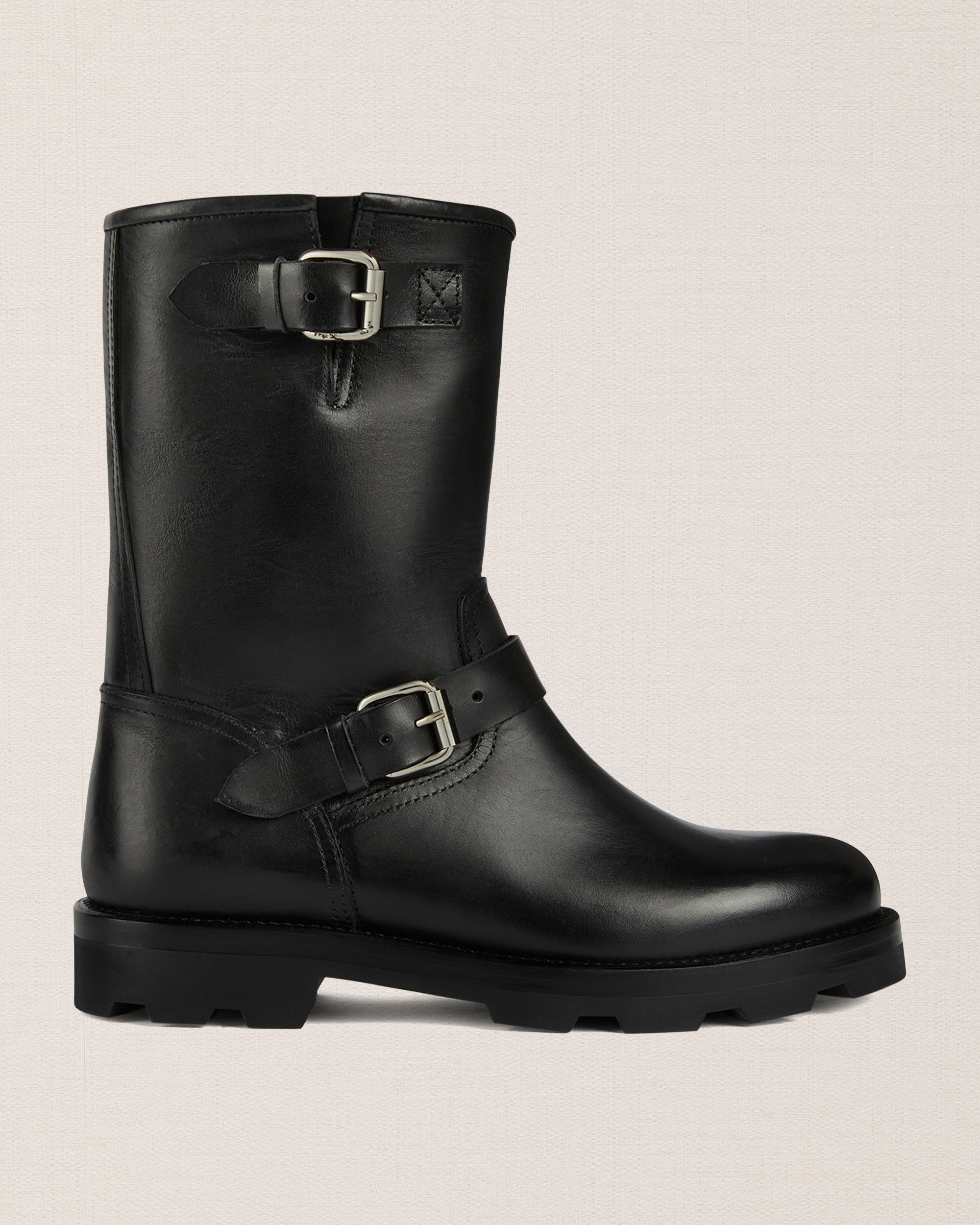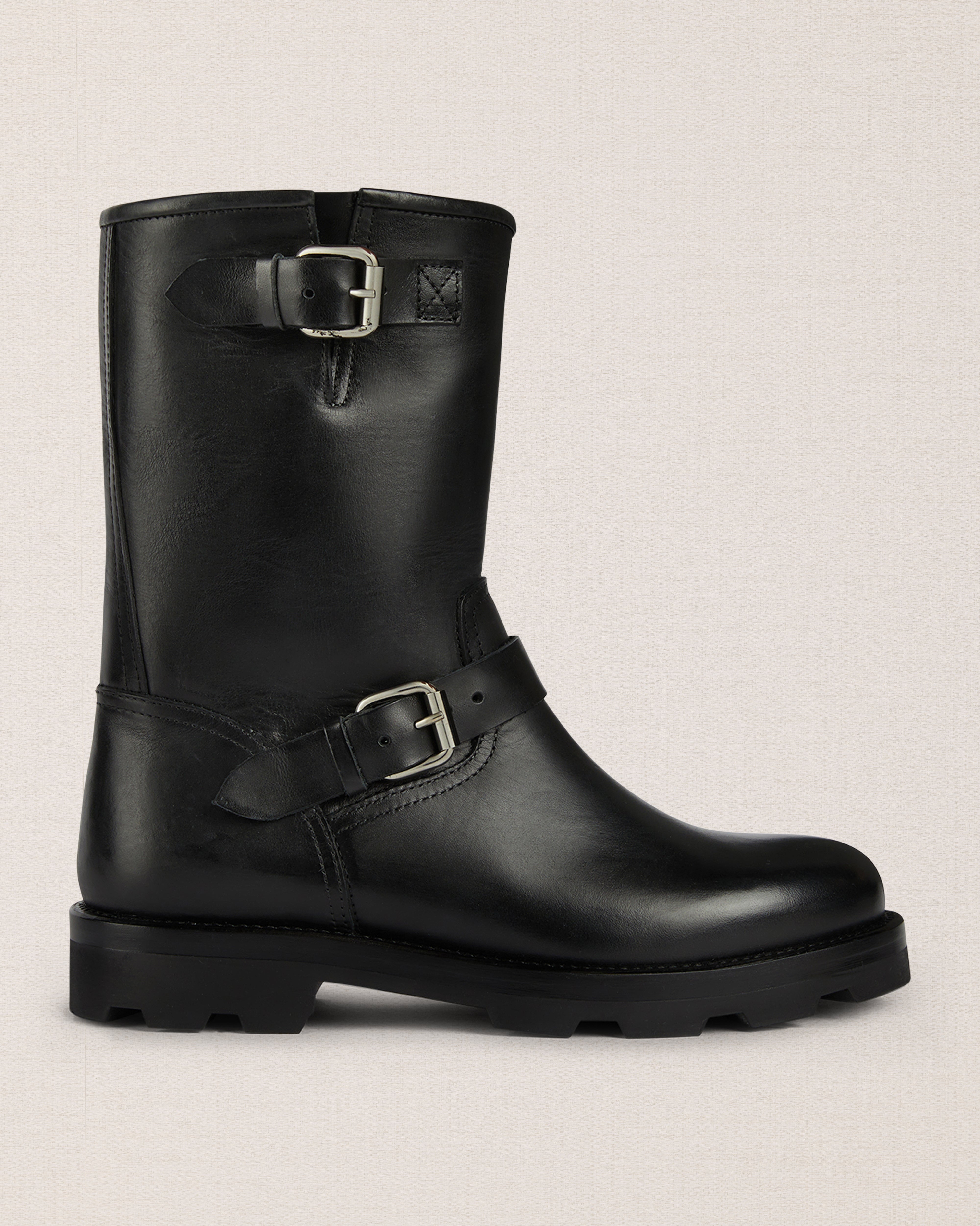 Smooth greased calf leather |